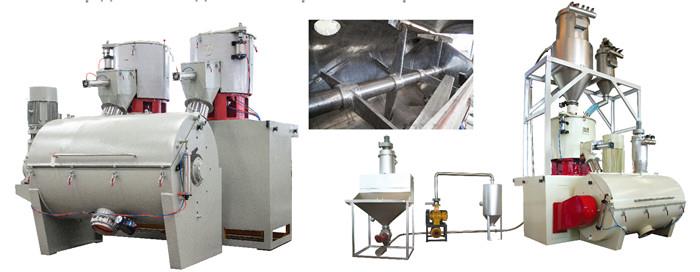 Mixing mixers are suitable for occupations such as plastic granulation, color masterbatch production, plastic modification, recycled material recovery processing, sheet material packaging industry, large-size injection molding, chemical powder mixing and other occupations. It can be used in the mixing of raw materials (water nozzle, color masterbatch, chemical powder, etc.) before granulation.